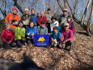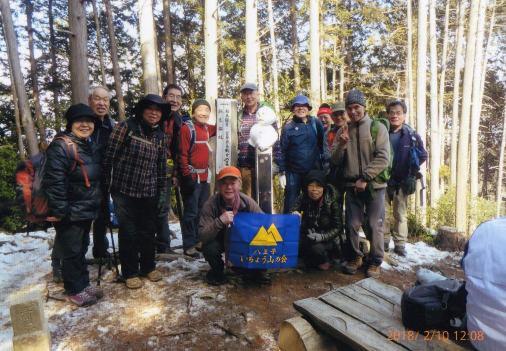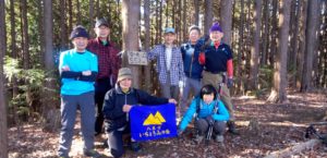 今年最初の山行で目の覚める青空のもと霜柱と落ち葉の上をみしりみしりと音を立てながらゆっくりと登って行きました。山頂の展望塔からは両神山や武甲山などの秩父の山や反対側では筑波山やスカイツリーがつまようじのようにのぞむことができました。下山後芦ヶ久保駅のそばの「あしがくぼの氷柱」を楽しみ無料の甘酒と薪ストーブで身体を温めました。お正月からの寒さにくらべ風も余りなく登山日和でLとSLのお陰で快適な一日を過ごすことができました。これから一年間の山行が始まりますが皆様宜しくお願い致します。  (記:OS)