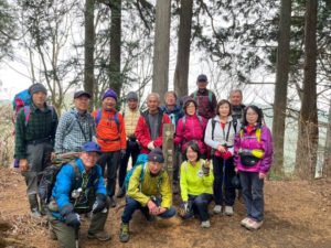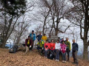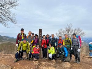 実際の山行は天候も良くさほど寒くも無くお試し登山のような感じで行けると思って体操後出発しましたが15名の参加者がいて私とリーダーさん2名で登った時のようにはいかず休憩回数が多く私のペースが速いのかと思いSLの難しさを実感しました。登山道はわりと穏やかで極端な急登もなく途中2ヶ所程足場が狭くロープの場所も有った位で頂上まで無事について日差しも有り眺めを楽しむと疲れも飛びますね。下山最初の山頂から暫くは急坂で注意しながら下山した所で体調不良の方が居て2組に別れて下山しました。下山路もなだらかな道が続いて予定より1時間遅れで無事梁川駅に到着しました。体調不良者の介護で4名ほど下山が遅れましたが暗くなる前に無事下山出来て良かったと思います。残った4名の方々有難うございました。反省会で山では何が起きるか分からないと痛感して今回もいい勉強になりました。(KH)