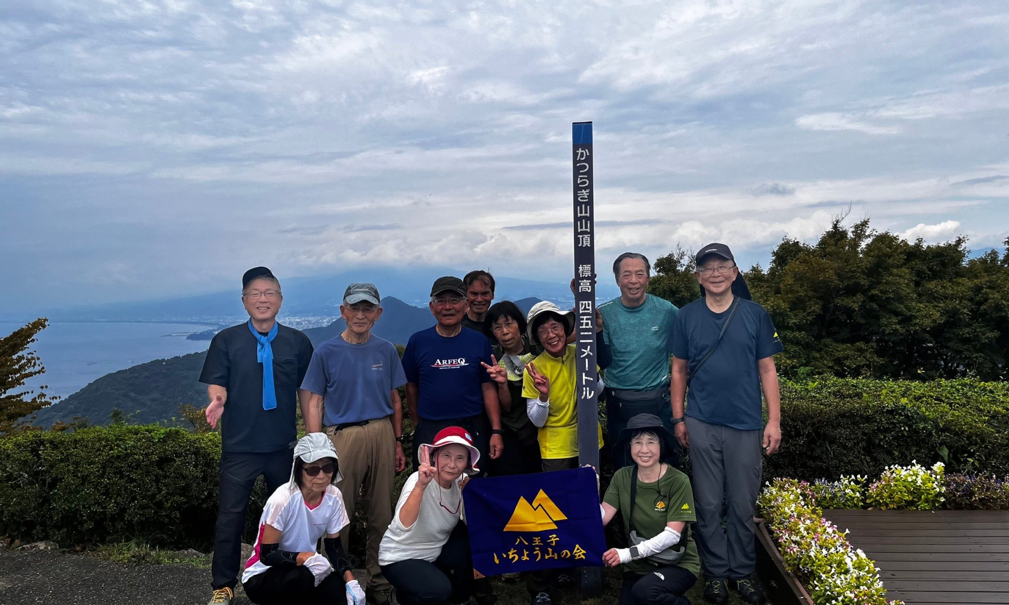 記念山行は当初「恵那山」を予定していましたが運送業界の2024年問題でバス運行体制が非常に難しくなり、バス利用の山行実施が出来なくなった為公共交通機関利用で行ける葛城山に計画変更した。葛城山は西伊豆にある為最近の気温上昇で10月でも暑いのではと心配しておりましたが日陰に入ると程よい風が吹いて気持ちが良く、開けた所では素敵な景色が目に飛び込んできた。この山はロープウェーでの観光がメインの山の様で登りでは一人の登山者にも会うことなく碧テラスまで行きました。山頂での昼食休憩後、背面登山口へ進む予定でしたが散策路の工事中の為迂回して城山へ向かうことにした。下山中雨が降りそうになった為城山へ行く予定をキャンセルしそのまま大仁駅へ向かうことにした。