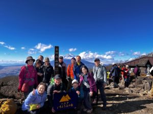 最初は順調に登り始められましたが、だんだん登る人下る人が増え始め高尾山6号路かと思うような数珠つなぎの渋滞登山になって来ました。まさかバスが空いていたのでこんなにも沢山の人が金時山に登るとは思いませんでした。休日登山でお手軽に登れるから仕方ないかな?いちょうの12人は皆、流れに乗って順調に登り山頂を目指しました。山頂は風が強く吹いて登山者多く居ましたがたまたま茶屋に全員が入ることが出来同じテーブルで暖かく昼食をとることが出来ほっといたしました。昼食後は記念写真を撮ったり、目の前の富士山を愛でたり、山頂で思い思いの時間を過ごすことが出来ました。下山は渋滞もなく順調に進んで全員ケガもなく楽しい山行が出来たことに感謝です。皆さん、ありがとう! (FI記)
