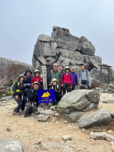 大弛峠を出発し、朝日岳・鉄山を経て、五丈岩のある山頂を目指します。比較的歩きやすい道が続きましたが、山頂手前の大岩は注意が必要で、慎重に進みました。山頂の五丈岩は、存在感を放ち圧巻でした。風を凌ぎながら、昼食を済ませ、登った道を下山。遠くの山肌が縞々に紅葉していてとても綺麗でした。今回もお天気に恵まれ、知らなかった景色を見ることが出来ました。ありがとうございました。(T)