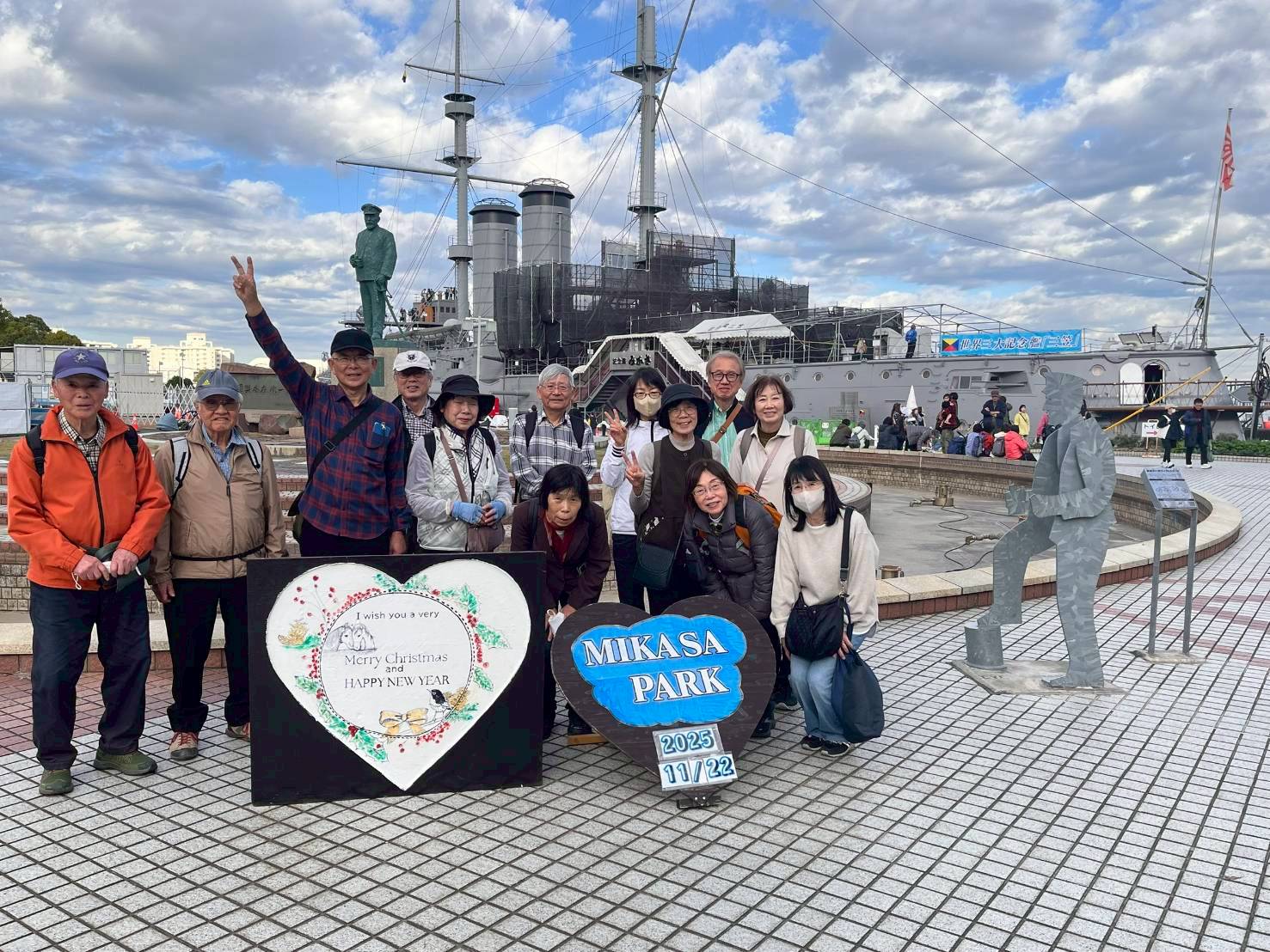 秋の絶好の行楽日和に三浦半島の付け根にある横須賀へ行ってきました。京浜急行電鉄の横須賀中央駅からのスタートで今回の街歩きが始まります。まず最初に三笠ビル商店街散策と思いましたがまだ午前9時頃の為店が開店しておらずスカジャンやお土産が営業前で見られずガックリしましたが、気を取り直して猿島航路発着場へ向かう。向かう途中の神奈川歯科大学前通りの歩道に水路がありその途中に帆船マストを模したモニュメントがあり横須賀の港が段々と近づいて来ていのが分かる。人数が多いため駅から港までの移動で時間を要した為、猿島行9時30分の船に乗船出来るかどうか心配をしたが予定通りに進み一安心。乗船後、船のオープンデッキに出て潮風に当たりながら海上からの富士山や三笠丸などを楽しんだ。上陸後猿島専門ガイドツアーに参加をしようと思ったが13名グループ参加は無理と言われ、その付近で諦めて自主的な見学準備をしていた。すると、運がいいことに係の方から13名の団体でガイドツアーが出来ると声を掛けられ猿島の詳しい案内を聞くことが出来た。担当のキャサリンさんの案内で歴史、史跡、軍事などの話題を説明して頂き、無事に島を巡ることが出来た。その後自由見学を楽しみ猿島を後にした。横須賀に帰り「いちごよこすかポートマーケット」で軽い昼食を取り世界三大記念艦「三笠」の見学へ向かった。「三笠」は英国で造船され1902年に竣工し横須賀に回航された。123年前の鉄の船が改修されたとしても現在見学が出来ることは当時の造船技術の高さを物語っていると思った。「三笠」の見学も案内係の荒さんに大変詳しい説明をして頂き歴史を理解することができ大変ありがたかった。その後、ドブ板通り、ヴェルニー公園へと横須賀の街を満喫した。参加者全員で汐入ターミナルにあるレストランで楽しい反省会を行い街歩きを終えた。