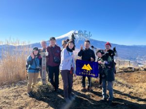 風が強く、山頂近くは坂がきつかったですが、山頂から見た富士山はこれまで登ってきた山々の中で一番の絶景でした。いちょう山の会の皆さんにもぜひ一度は見ていただきたい景色です。 (K.I記)