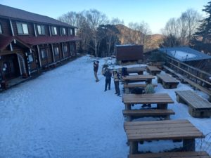 【山行概要説明】 東京都の最高峰として人気が高く、山頂直下の雲取山荘は通年営業しています。冬も雪が少なく、危険なコースも少ないため雪山初心コースとして知られています。奥多摩駅で登山届を提出して、鴨沢から小袖川に沿っての林道を走り、丹波山村営駐車場に到着後に登山を開始。登山道はよく整備されていて、春のそよ風が吹いているような穏やかな気候に中を歩き、七ツ石分岐で昼食取りました。その後、標高1500mを過ぎても雪は全くなく、相変わらず穏やかな気候の中でFさんはついに半袖の夏仕様に!!小雲取までの急登りを過ぎると、山頂付近の避難小屋が見えます。しばらく歩いて無事に東京都最高地点に到着。一番危ないと思っていた山荘までの下りも若干雪は残るものの、アイスバーンはなく無事に雲取山荘到着 山荘では炬燵が用意され、夜は冷える見込みで着込んだためか、暑すぎて夜目覚めてしまう羽目になりました。(山荘の最低気温は-5℃くらいでした)翌日は、七ツ石山、七ツ石小屋を経緯して無事に駐車場に到着しました。